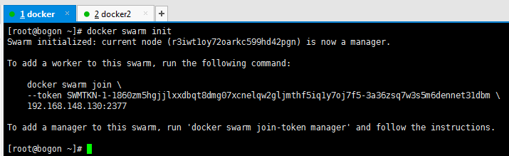 docker swarm join \ --token SWMTKN-1-1860zm5hgjjlxxdbqt8dmg07xcnelqw2gljmthf5iq1y7oj7f5-3a36zsq7w3s5m6dennet31dbm \ 192.168.148.130:2377