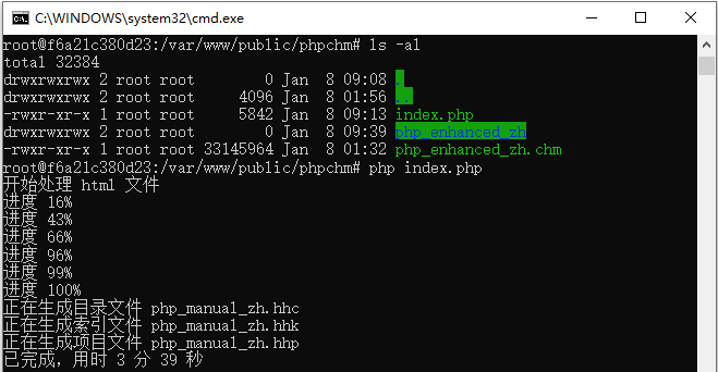 - 在当前目录下新建子目录 php_enhanced_zh/,并解压 php_enhanced_zh.chm 到这个子目录下