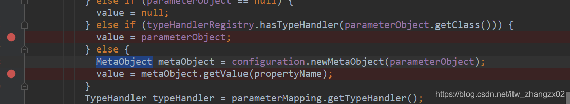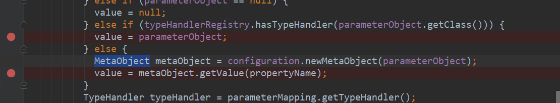下面是我们的默认参数处理器DefaultParameterHandler中的setParameters()的操作:为啥我们使用注解的时候,必须要用#{user.userCode},而单个入参时,可以直接用#{属性名}的方式。另外单个入参时,我们的形参是可以随便写的,如果是简单类型,直接返回我们的值(所以我们的#{这里随便写});如果是对象类型,使用元数据方式直接获取属性字段的值(所以用#{属性名称});使用注解时,我们的元数据中封装的是map,所以使用#{user.userCode}或者#{param1.userCode}才能够获取到值。