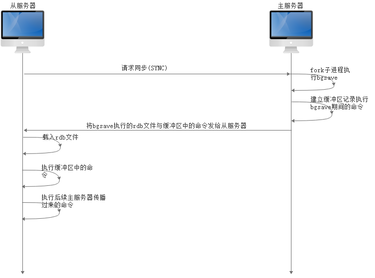 主服务器将生成的RDB文件发给从服务器,从服务器载入RDB文件