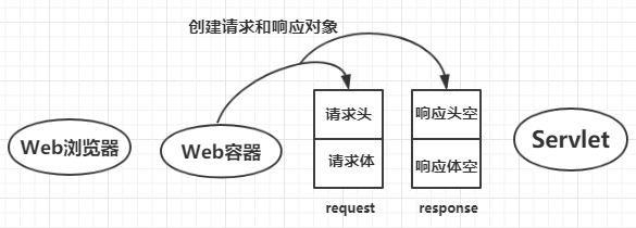 ①浏览器根据用户的请求生成http请求消息,并将其发送给Web容器。