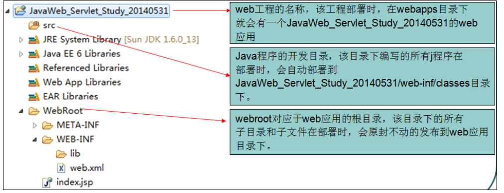在eclipse中新建一个web project工程,eclipse会自动创建下图所示目录结构: