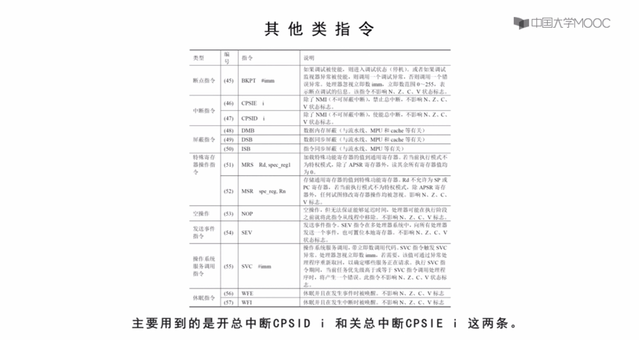 用于标志ALU的状态:负标志N 零标志Z 进位标志C 溢出标志V 异常号