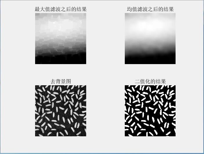 其实右上的图就是背景的光照分布。最后的二值图中还是存在一些白色的噪声点,可以在小窗体范围内,做一个最小值滤波再做一个最大值滤波,这样既消除了噪声又保证目标的边缘不会被破坏。