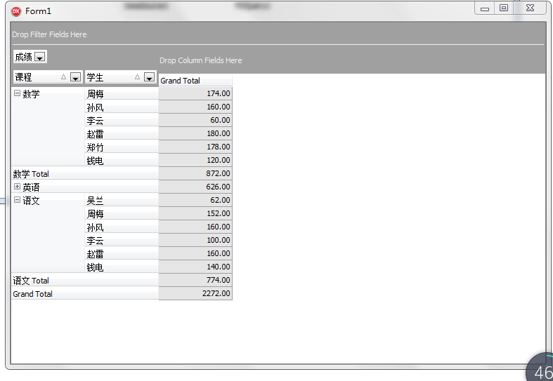 选择FieldS下的cxDBPivotGrid1FieldX ,在对象 窗口设置好属性,常见的属性有