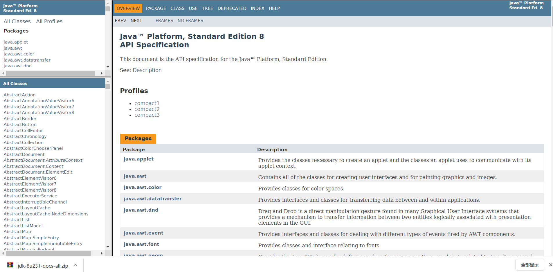 文档下载地址下载完解压,然后有个API文件夹,打开index,就是你想要的东西,见证奇迹的时候到了!