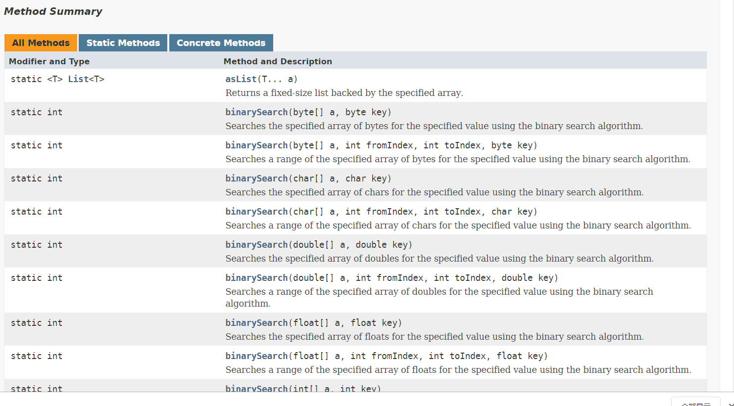 哎,是不是看到了一个熟悉的方法,就是咱们刚刚写的那个方法binarySearch(),二分查找,那我们看一样JDK里的二分查找怎么是实现的呢,咱们去遛一眼源码去!gogogo去JDK SRC目录下,util包里有一个Arrays类打开看看吧!