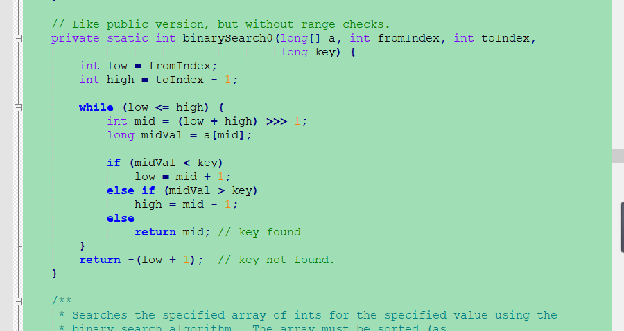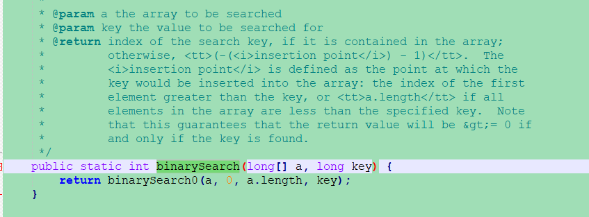 这个方法没有提供具体的实现,但是它调了一个binarySearch0()这个方法
