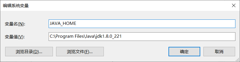 变量值: C:\Program Files\Java\jdk1.8.0_221
