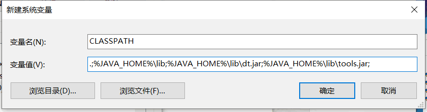 变量值: .;%JAVA_HOME%\lib;%JAVA_HOME%\lib\dt.jar;%JAVA_HOME%\lib\tools.jar;