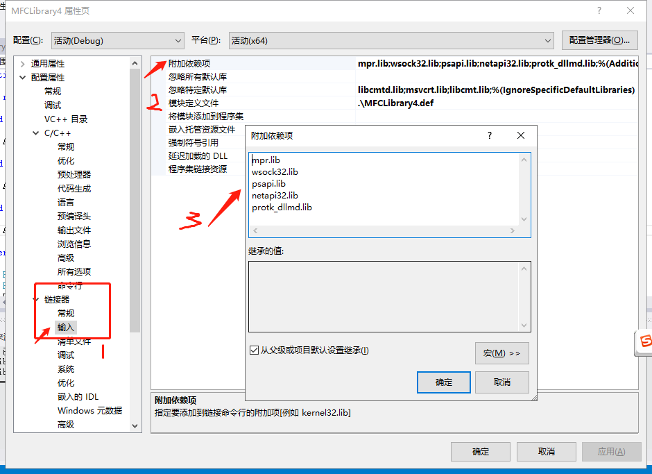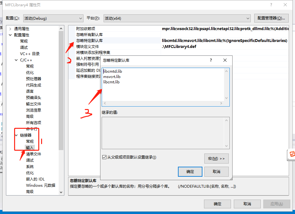 第四步:添加“附加依赖项”所依赖的库和忽略一些库,为什么忽略待研究