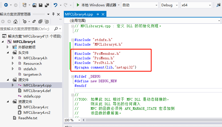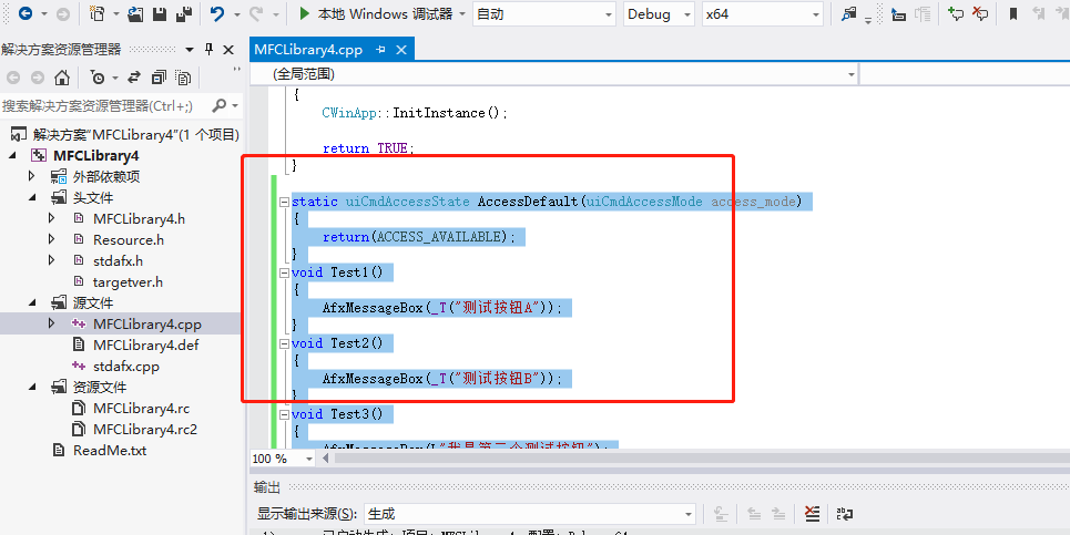 第五步:在源文件MFCLibrary4.cpp添加头文件和测试代码