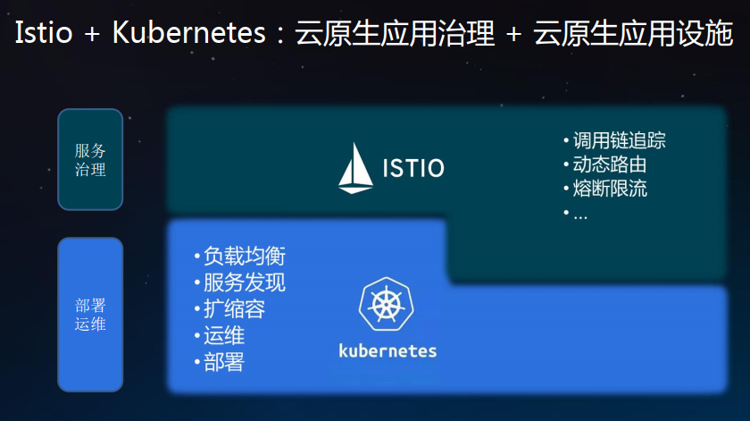 Kubernetes提供了部署、升级和有限的运行流量管理能力,但并不具备熔断、限流降级、调用链治理等能力。Istio是基于Kubernetes构建的开放平台,它很好的补齐了Kubernetes在微服务治理上的诸多能力。