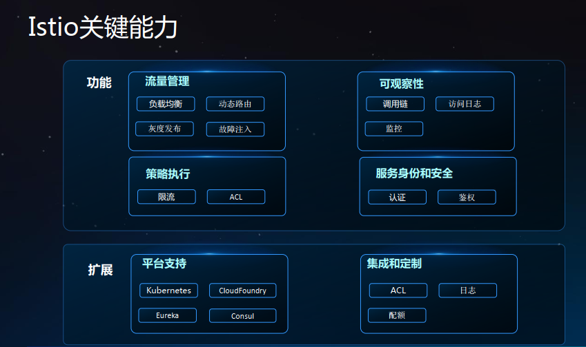Istio 是一个功能十分丰富的 Service Mesh,它包括如下功能: