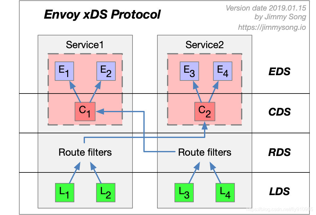 xDS 协议是由 Envoy 提出的,在 Envoy v2 版本 API 中最原始的 xDS 协议只指 CDS、EDS、LDS 和 RDS。