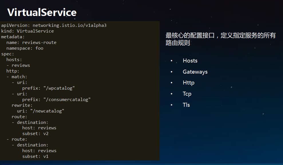 - --服务如何被访问?访问的时候给他做什么控制(虚拟服务让您配置如何在服务网格内将请求路由到服务,这基于 Istio 和平台提供的基本的连通性和服务发现能力。)
