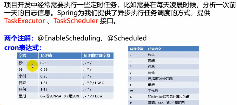通过在任意类上使用注解@EnableScheduling开启定时任务功能(依笔者最近所用,凡是@Enable开头的貌似都是开启某项功能的注解),开启后可以在任一需要定时执行的方法上使用注解@Scheduled完成配置,项目启动后即可自动按需要执行