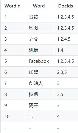 那么,倒排索引就是关键词到文档 ID 的映射,每个关键词都对应着一系列的文件,这些文件中都出现了关键词。