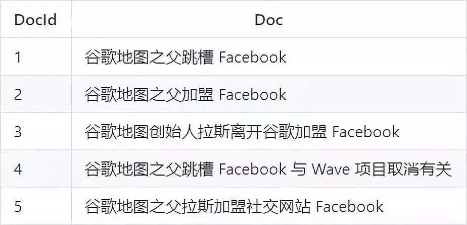 比如用户输入查询 Facebook,搜索系统查找倒排索引,从中读出包含这个单词的文档,这些文档就是提供给用户的搜索结果。