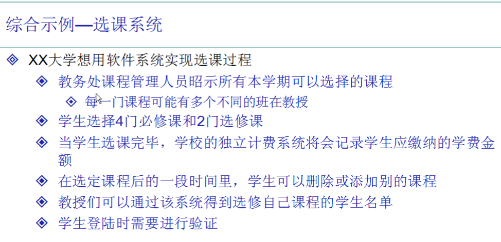 那我们来看,跟选课系统打交道的有哪几个呢? 课管员,学生,教授,财务系统
