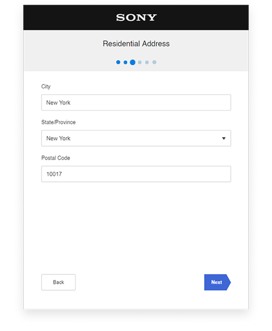 另一种让注册表单清爽的方法是将注册表单拆分成为多个步骤。每个栏目都像一个问题,因为可以显示当前的填写进度,这样他们可以知道自己已经完成了多少问题,这种方式增强了用户的信心,缓解了用户填写表单时的焦虑感,让用户可以毫无压力的直到完成注册。