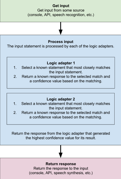 大家已经知道chatterbot的聊天逻辑和输入输出以及存储,是由各种adapter来限定的,我们先看看流程图,一会再一起看点例子,看看怎么用。