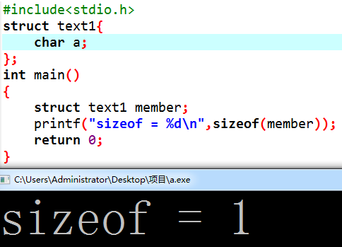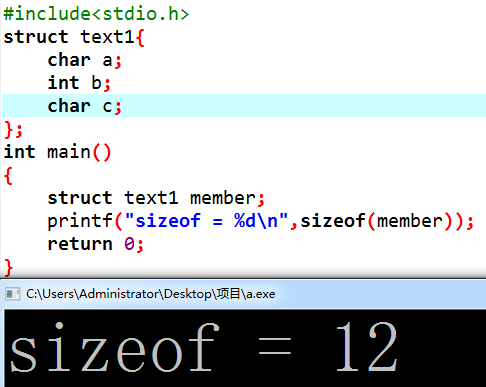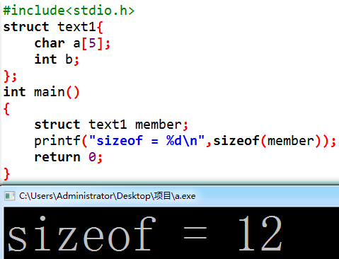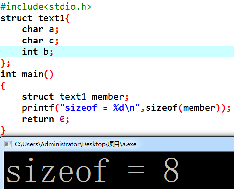 正式开始,定义一个char和int,如果不对齐sizeof的结果应该是5,看结果