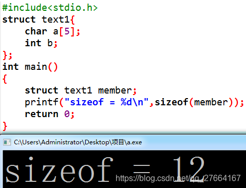 可以做一个小结:可以发现,结构体sizeof大小总为一个结构体中数据占用空间最大的那个变量的倍数,上面的例子就可以发现如果最大的变量类型是int,那么sizeof一定是4的倍数,两个相连的数据如果拼凑起来不是4的倍数就需要进行数据对齐,计算时不要跳过中间某个变量与后一个变量进行相加计算。至于包含的数组,拆开来算,就像上面那个例子,sizeof不能是字符数组a[5]的5的倍数,依旧还是按照单个变量的最大值来补齐。