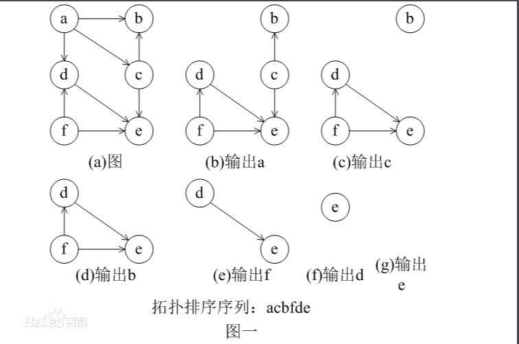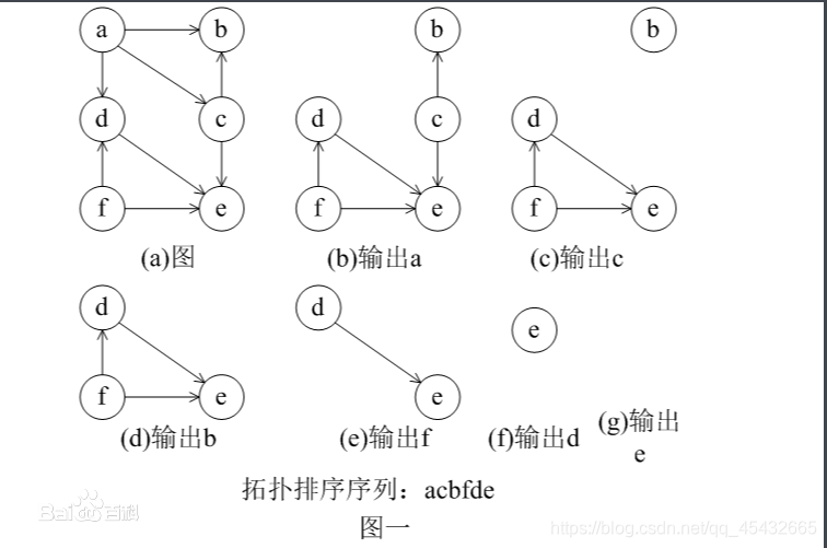 - 取出点时只需要每次取出度为0的点,并且把和刚刚取出点连通的点的度都减少1.