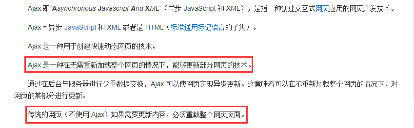 请求响应回来之后不需要重新加载整个网页,实现网页的局部刷新