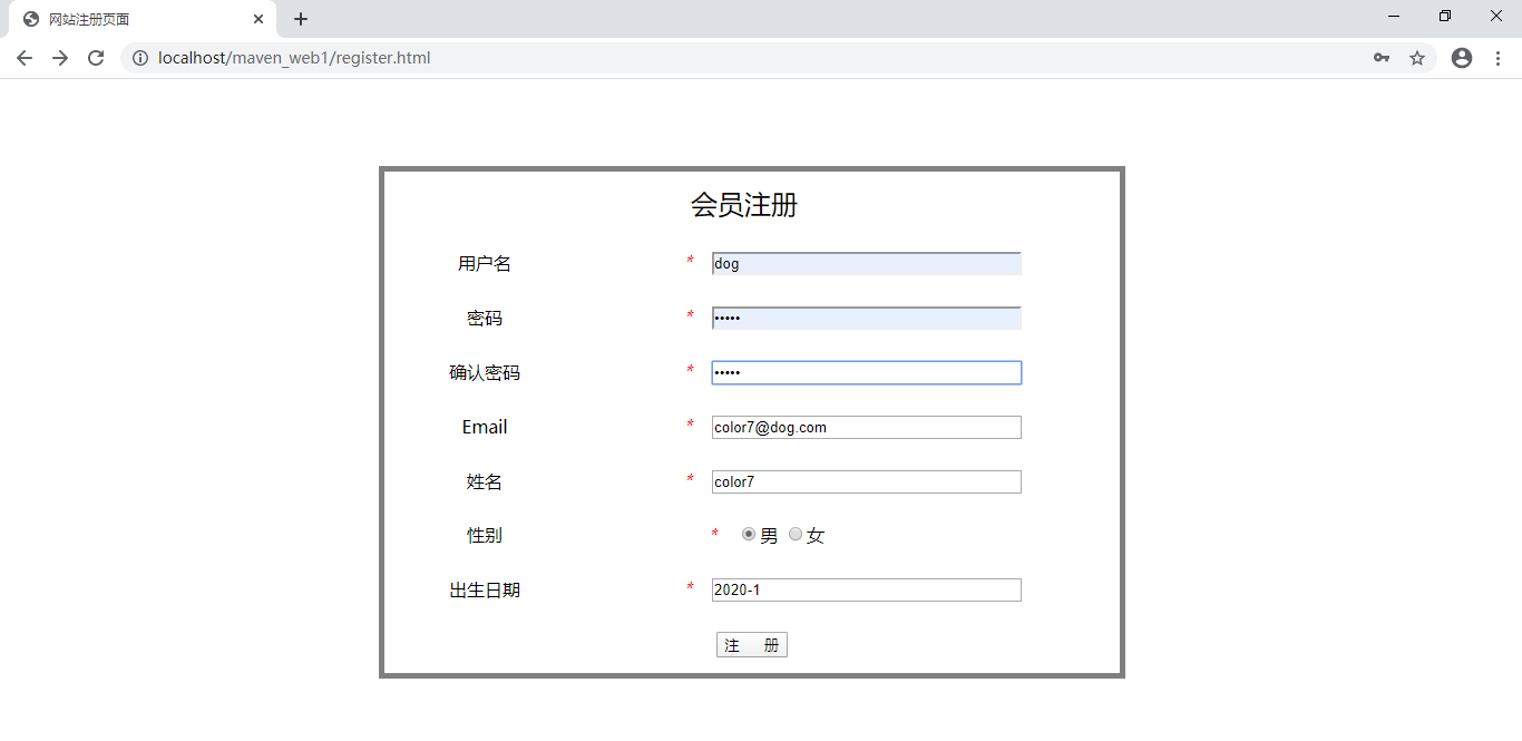 案例二:提供注册表单,通过ajax请求提交表单数据保存用户信息到数据库中