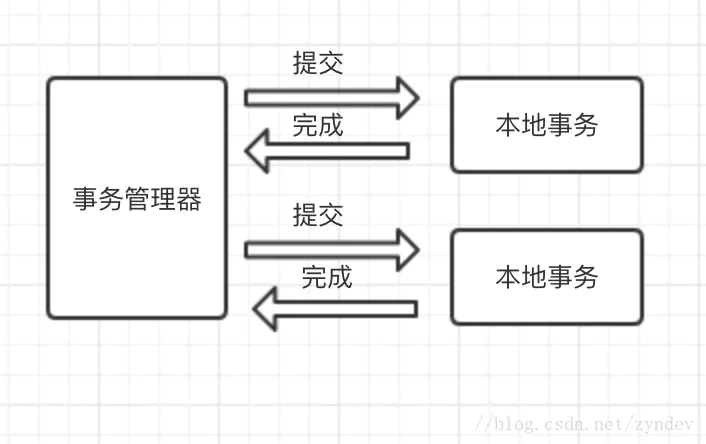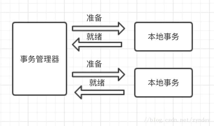 XA是一个分布式事务协议,由提出。XA中大致分为两部分:事务管理器和本地资源管理器。其中本地资源管理器往往由数据库实现,比如Oracle、DB2这些商业数据库都实现了XA接口,而事务管理器作为全局的调度者,负责各个本地资源的提交和回滚。XA实现分布式事务的原理如下: