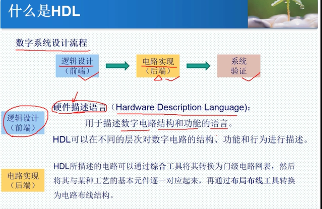 硬件描述语音。HDL描述得到的电路,然后对HDL描述的电路进行综合工具,将其进行布局。