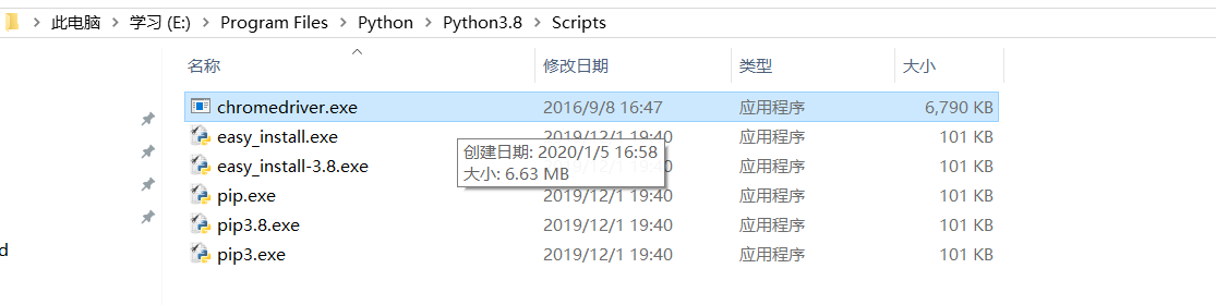 (2)将chromedriver.exe文件放在项目路径下 E:\Program Files\Python\Python3.8\Scripts