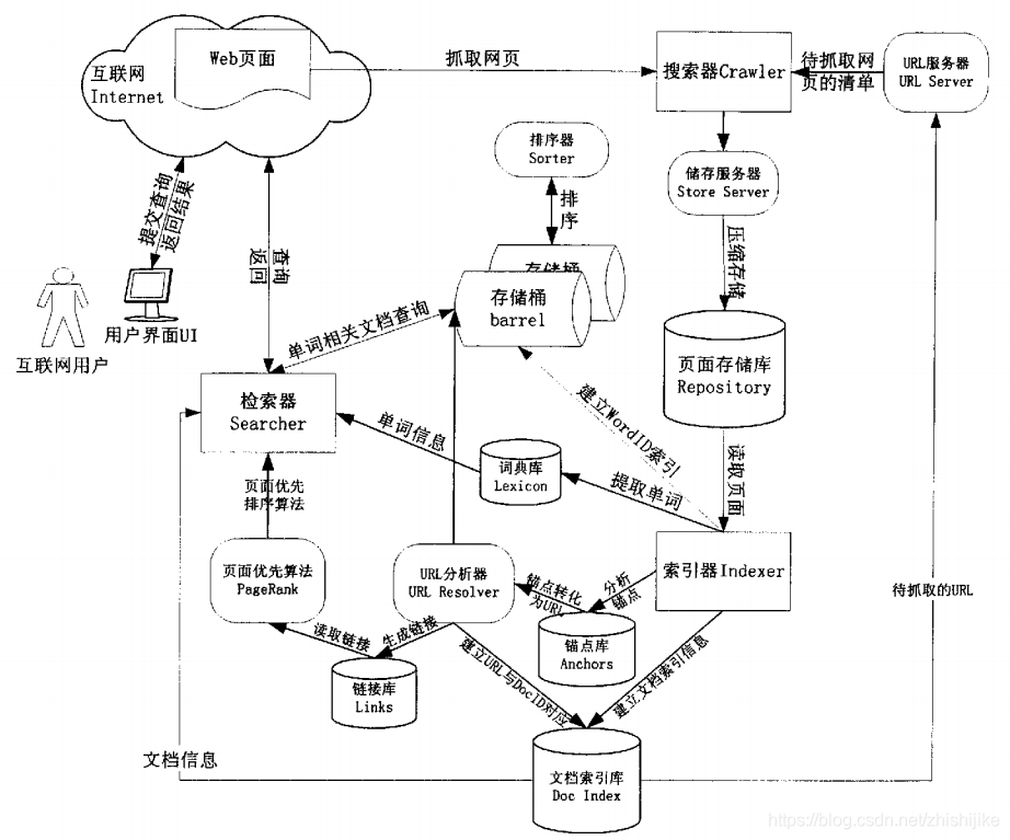 搜索引擎的详细软件内部构成和具体工作流程说明如下: