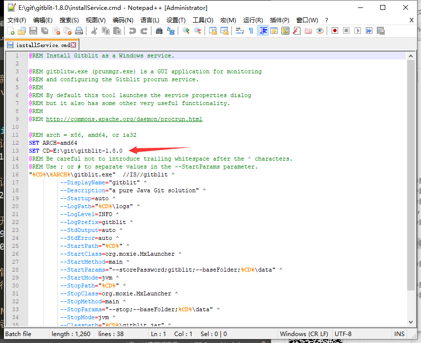 - 用管理员模式 打开命令提示符,并切换到 gitblit 所在的目录
