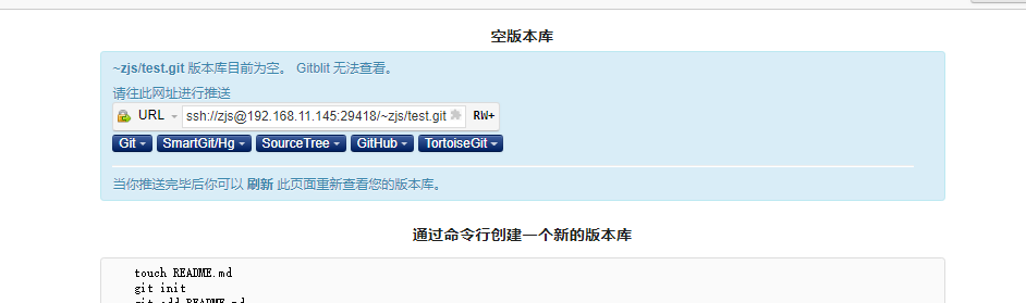 这样就显示,就添加到远程仓库了,刷新空仓库页面就会显示刚提交的文件。