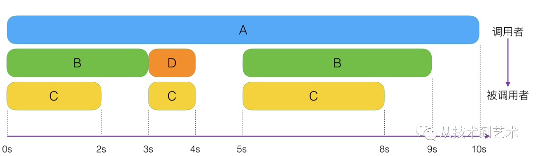 从图中我们可以很清楚到看到各个方法在时间维度上的调用关系。