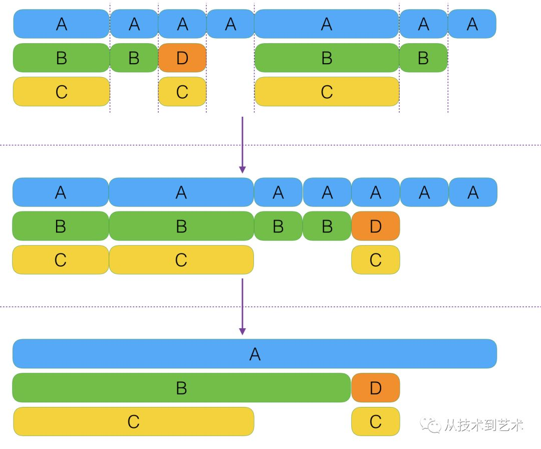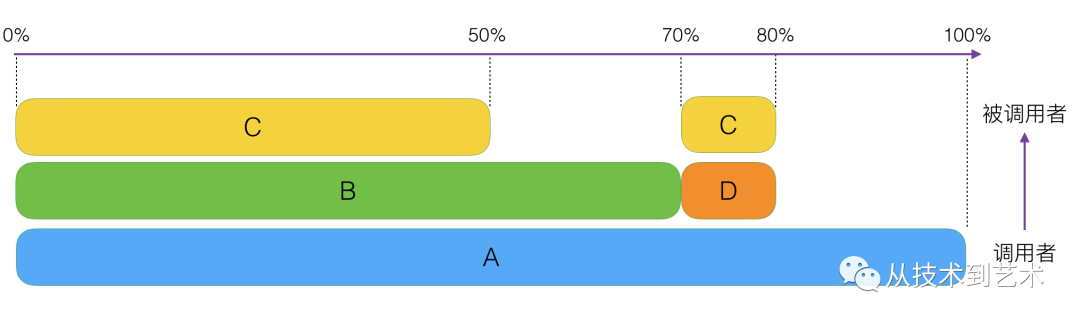 用一张抽象图来描述,每个色块表示一个方法调用,水平方向是时间轴,竖直方向从上到下为调用关系。