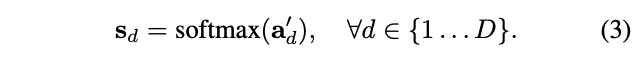 接着对的K维attention分别进行softmax归一化,产生一组score map
