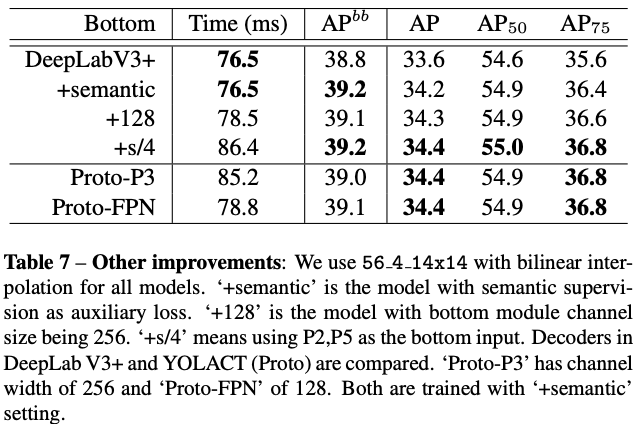 论文采用DeepLab V3+的decoder,该decoder包含两个输入,一个低层特征和一个高层特征,对高层特征进行upsample后与低层特征融合输出。这里使用别的结构也是可以的,而bottom module的输入可以是backbone的feature,也可以是类似YOLACT或Panoptic FPN的特征金字塔