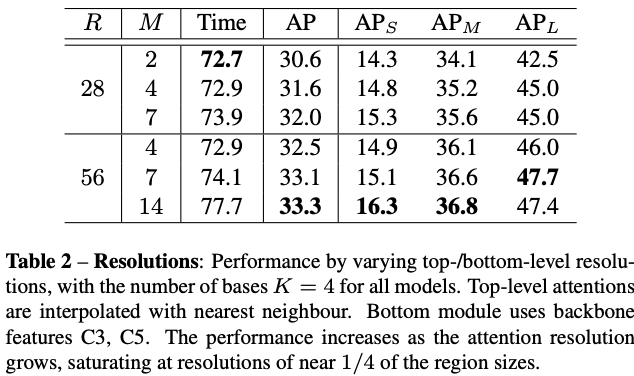 在对top-level attentions进行插值时,双线性比最近邻高0.2AP