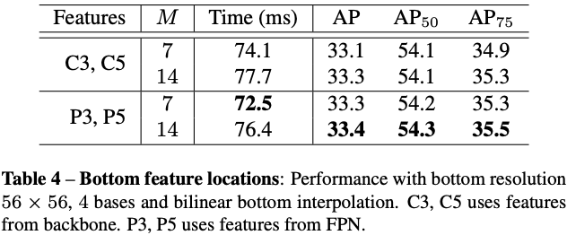 从图4可以看出,使用FPN特征作为bottom模块的输入,不仅效率提升了,推理时间也加快了