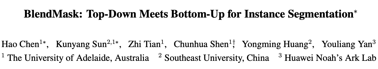 论文:BlendMask: Top-Down Meets Bottom-Up for Instance Segmentation
