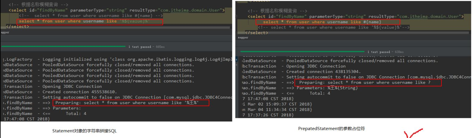 sql 语句中使用#{}字符: 它代表占位符,相当于原来 jdbc 部分所学的?,都是用于执行语句时替换实际的数据。