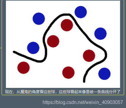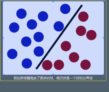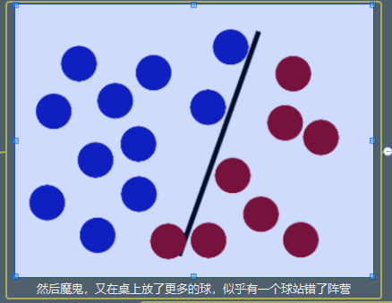 魔鬼在桌子上似乎有规律放了两种颜色的球,说:“你用一根棍分开它们?要求:尽量在放更多球之后,仍然适用。”