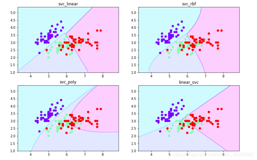 # 在2*2子图中画出四种SVC
