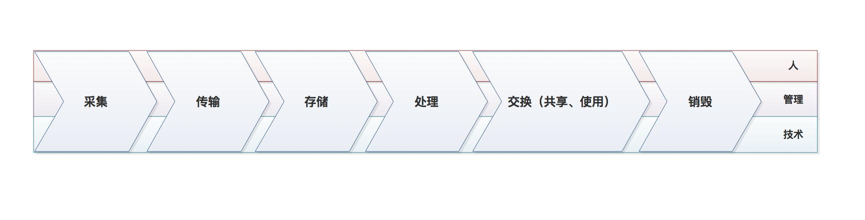 数据生命周期管理是指在数据采集、传输、存储、处理、交换(共享、应用)、销毁等阶段下对流动的数据进行综合管理。在数据生命周期管理期间,涉及人、管理、技术三个层面。