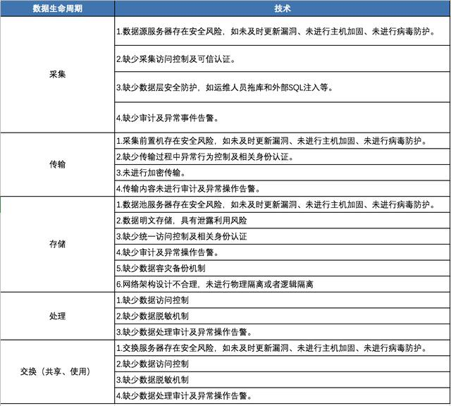 数据生命周期内,不同环节存在不同安全风险,只有了解环节内的风险,才能针对性的“治根”解决安全问题。