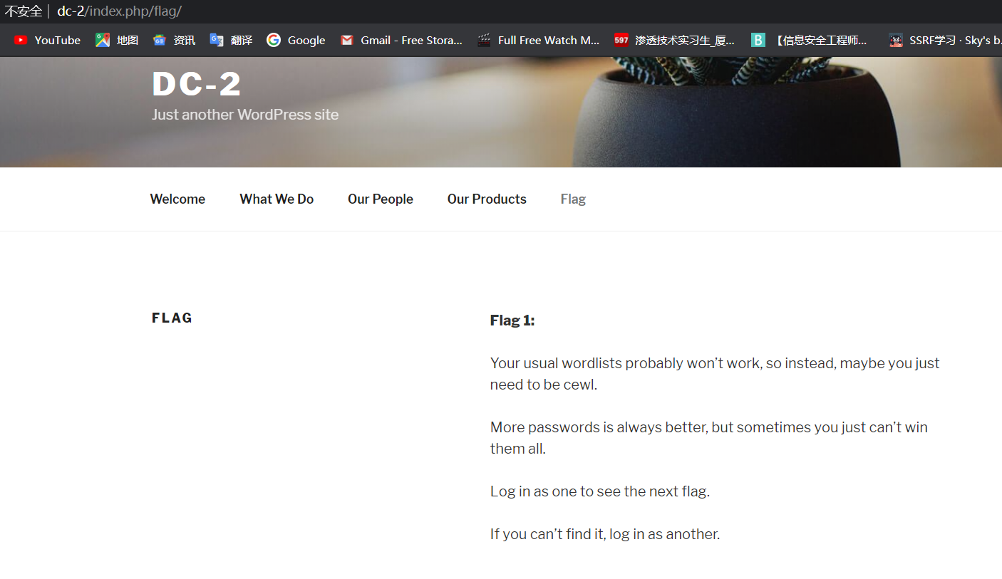 然后就看到了flag1,上面有关键字cewl,字面意思大概就是要爆破出用户名和密码了